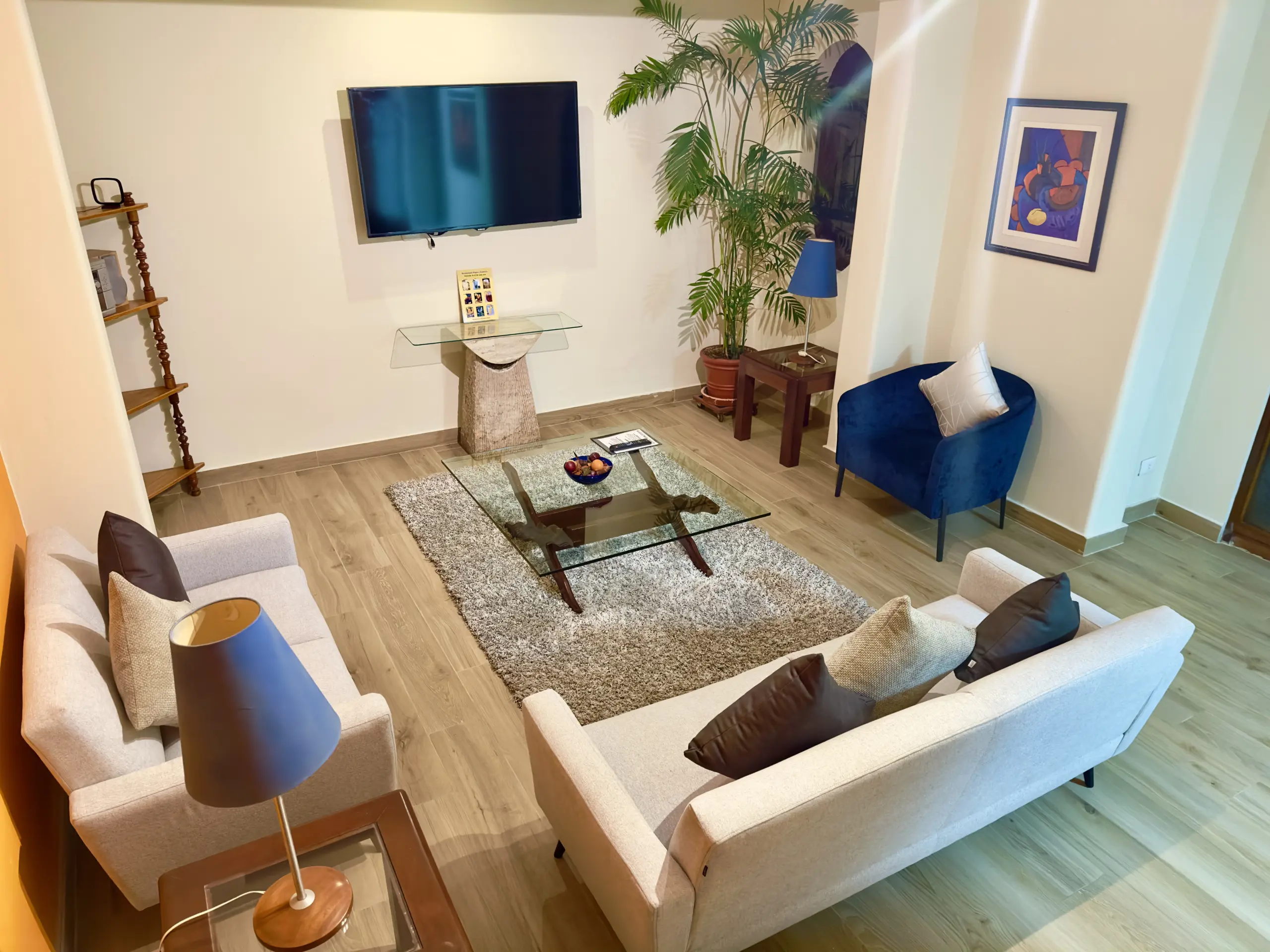 Condominio de dos pisos frente a la piscina, rodeado de jardines, ideal para familias de hasta 6 personas. Ofrece mayor privacidad y comodidad, con un dormitorio equipado con cama Queen size y dos dormitorios adicionales, cada uno con cama doble. Su entorno tranquilo y natural crea el espacio perfecto para disfrutar y relajarse en familia.