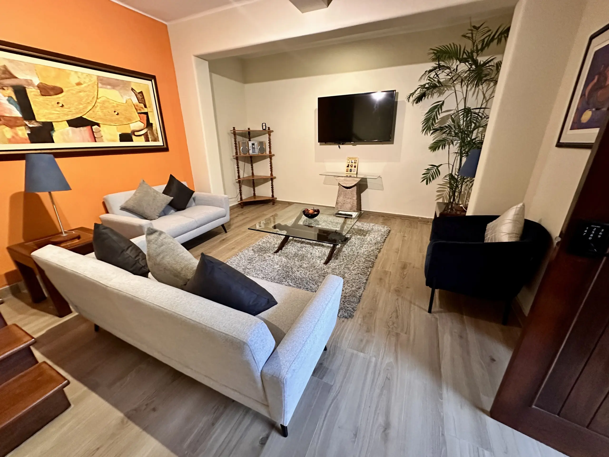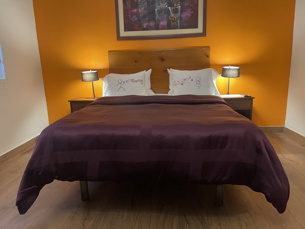 Ideal para 2 personas, cuenta con cama Queen size, tiene ambiente amplio, cocina equipada con menajes, vajillas y espacio para compartir cómodamente.
