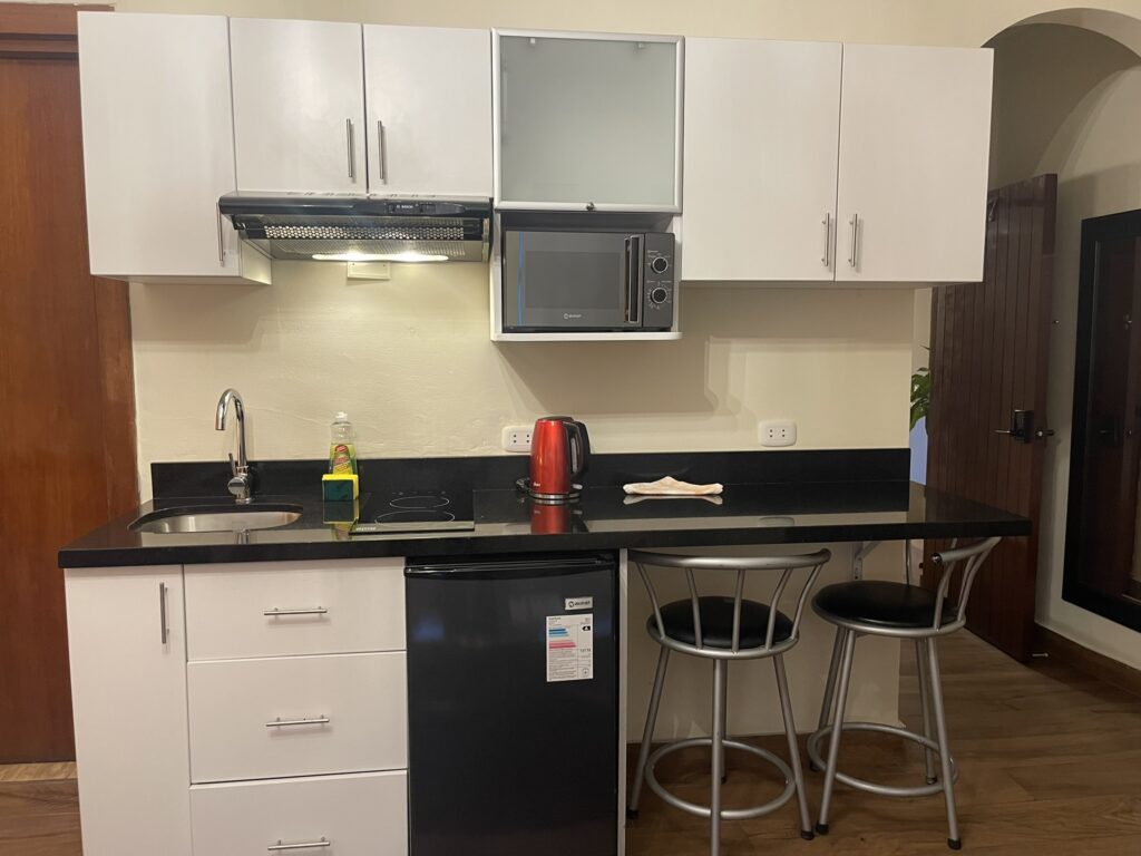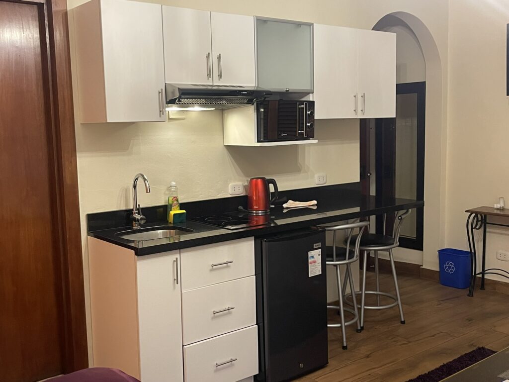 Cada departamento cuenta con una cocina pequeña, funcional y equipada para preparar tus comidas.